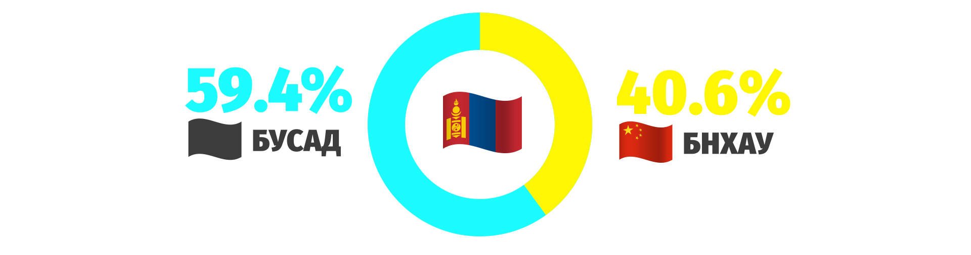 Гэтэл бид гаднаас авдаг нийт импортынхоо 40 гаруй хувийг Хятадаас авдаг. Жимс ногоо, бэлэн хувцас, ахуйн бараа, техник тоног төхөөрөмж гээд гээд ямар олон бүтээгдэхүүнийг бид Хятадаас авдгийг та мэднэ.